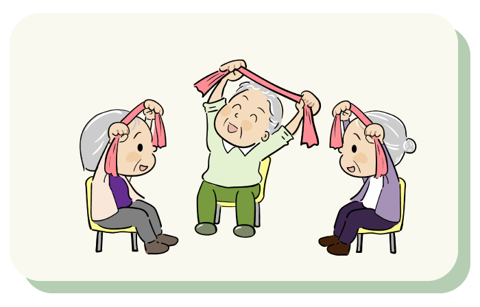PT(理学療法士)などリハビリ専門職が、皆様の日常生活動作の困りごとを伺い、適切なアドバイスや運動メニューを提案し、必要なプログラムを実施していただき、3か月毎に体力測定を実施し、それに基づき評価と見直しを行います。