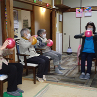 また、ボールや棒を使った体操、機能訓練指導員によるオリジナル体操等を取り入れ、いつまでも元気に過ごして頂けますよう支援させて頂きます。