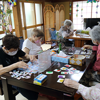 デイサービスステップ・ワンでは、合唱、習字、脳トレーニング、手芸、工作等ご利用者様お一人お一人がされたい事をスタッフがお手伝いさせて頂きながら進めています。